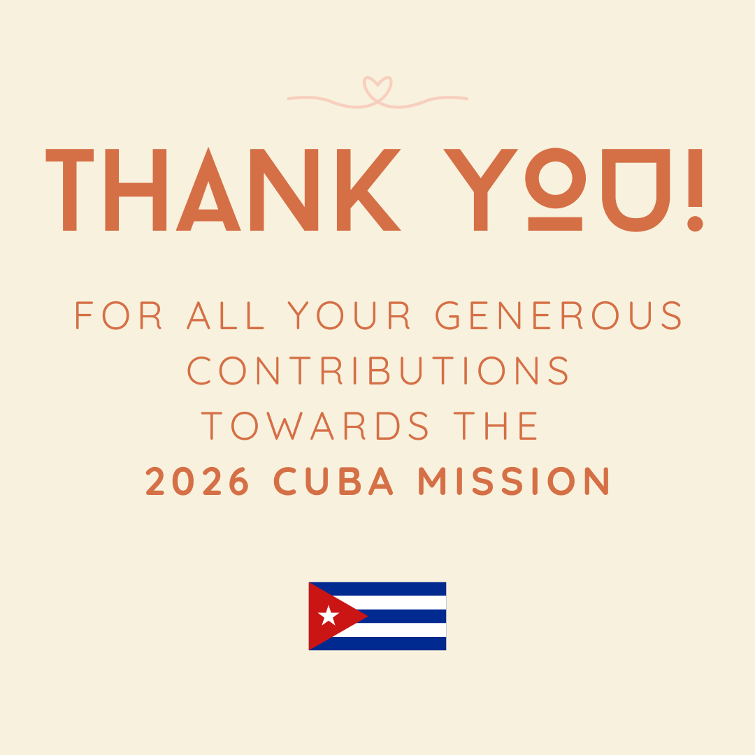 A big thank you to everyone for your incredible contributions to our Cuba Mission fundraiser! We have raised over $20,000, which could not have been possible without your open hearts and generosity for the people of Cuba.