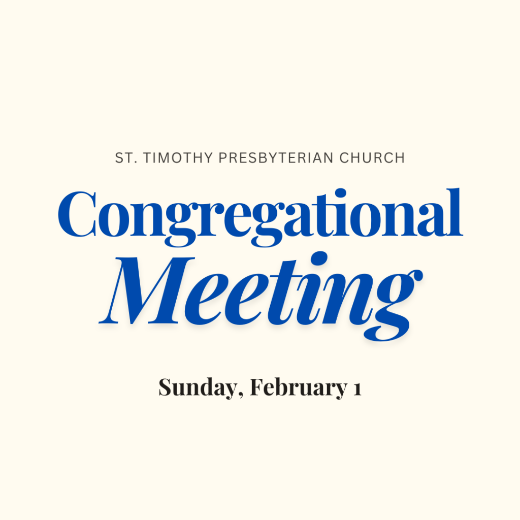 Please note that due to the inclement weather last Sunday, our congregational meeting has been this Sunday (Feb 1) after service. Please join us!