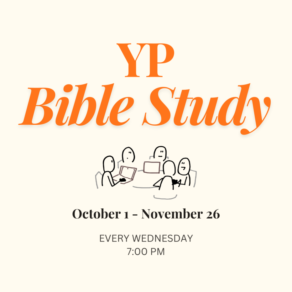 YP will be having our own bible study every Wednesday from October 1 – November 26, please pray for meaningful reflections and sharing.