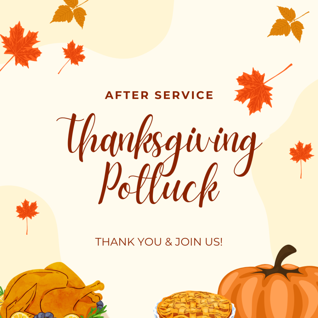 This past Sunday we had our Thanksgiving Potluck and it was a huge success! A big thank you to everyone who contributed and helped with food, cleaning, and making it such a nice celebration.